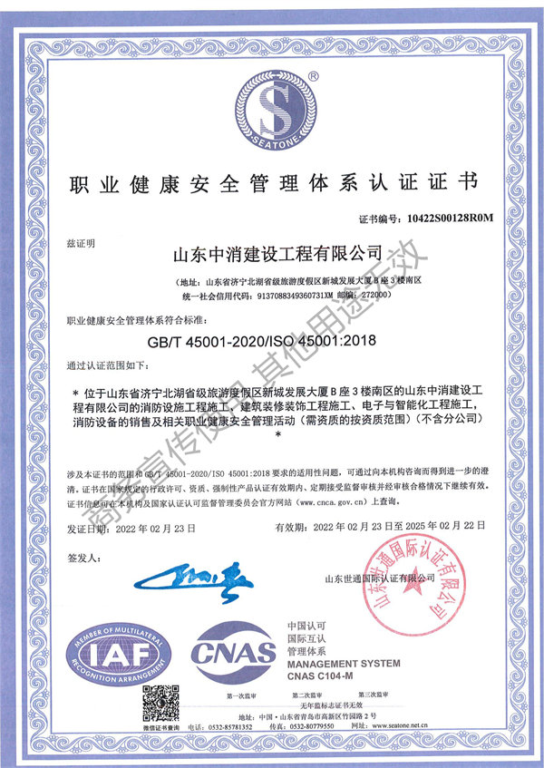 公司重視人才培養,秉承以人為本、和諧共享的發展方針。匯集了一批高水平高素質的工程專業管理人才,組建了一支實踐經驗豐富的工程技術專業隊伍,現有一級消防工程師10余人、二級注冊建造師20余人,高級工程師、工程師及助理工程師等30余人,經國家相關部門培訓合格的重點崗位專業技術人員50余人。目前已在濟南、青島、日照、濰坊、東營、德州、臨沂、淄博、菏澤、棗莊、滄州、新疆等地設二十余家分公司。
